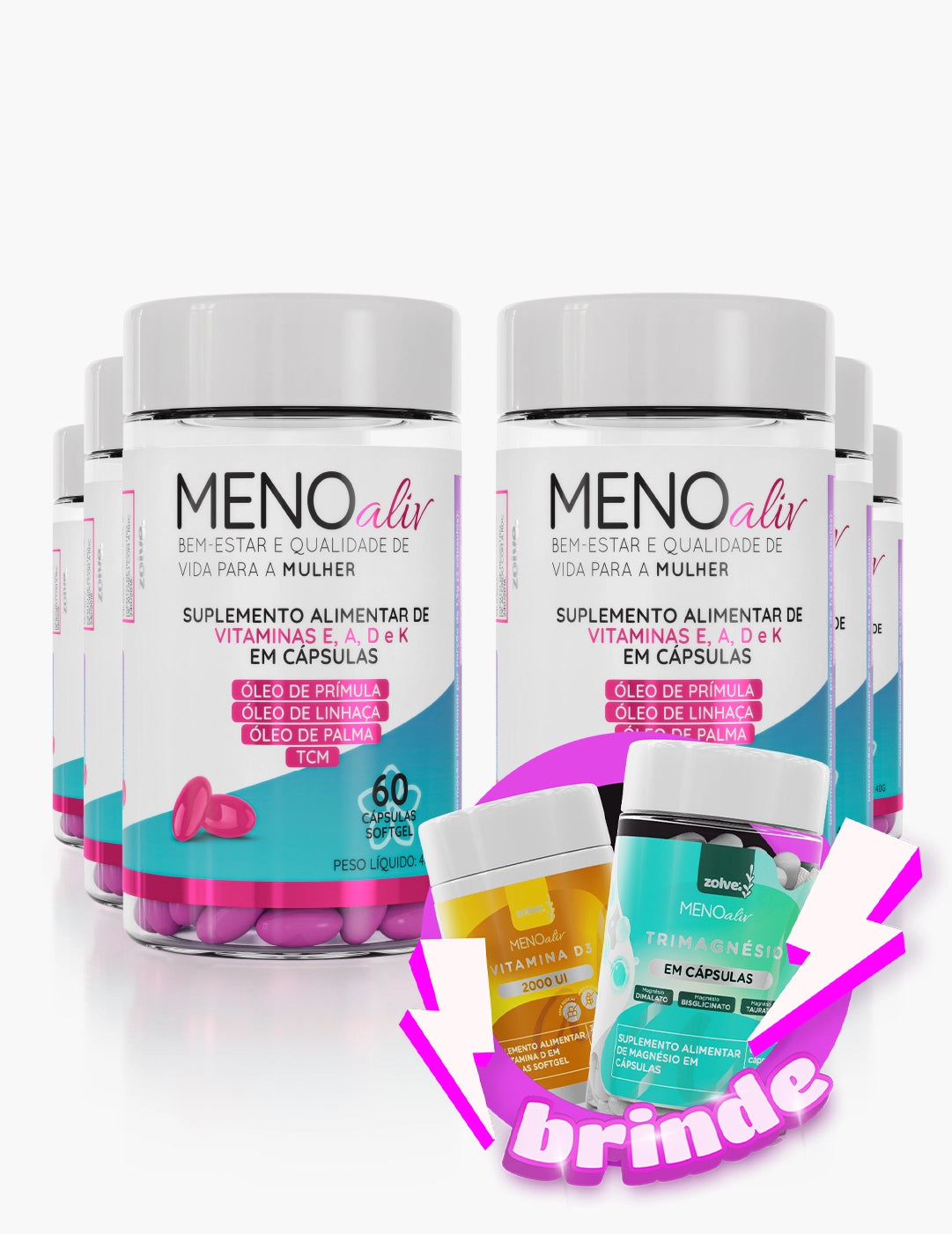 O Meno Aliv é um suplemento natural livre de hormônios que contribuem para o bem-estar e qualidade de vida da mulher!